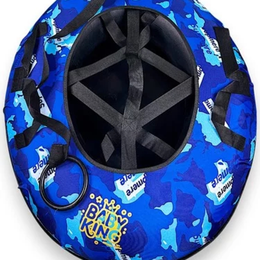 Тюбинг BABY KING — прочный и надёжный вариант для зимних развлечений. Изготовлен из морозостойкого ПВХ с усиленным скользящим дном и автокамерой повышенной прочности. Оснащён удобными ручками и усиленными швами. Доступен в разных расцветках.