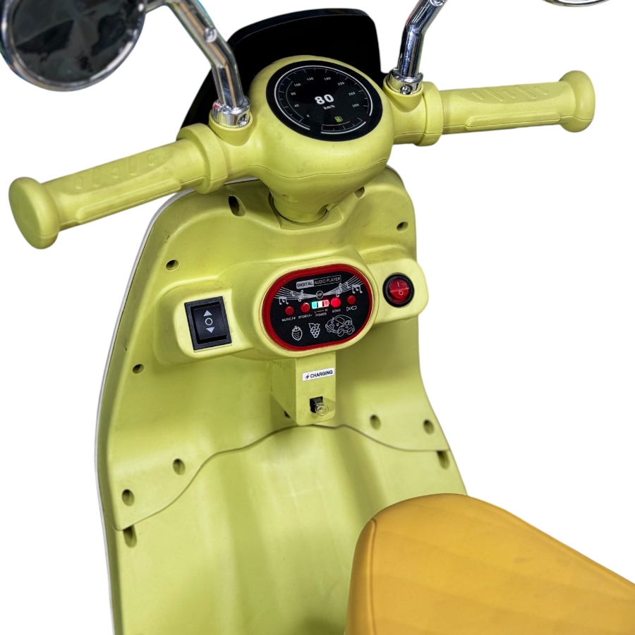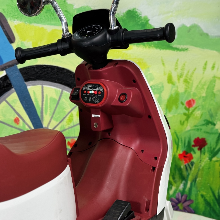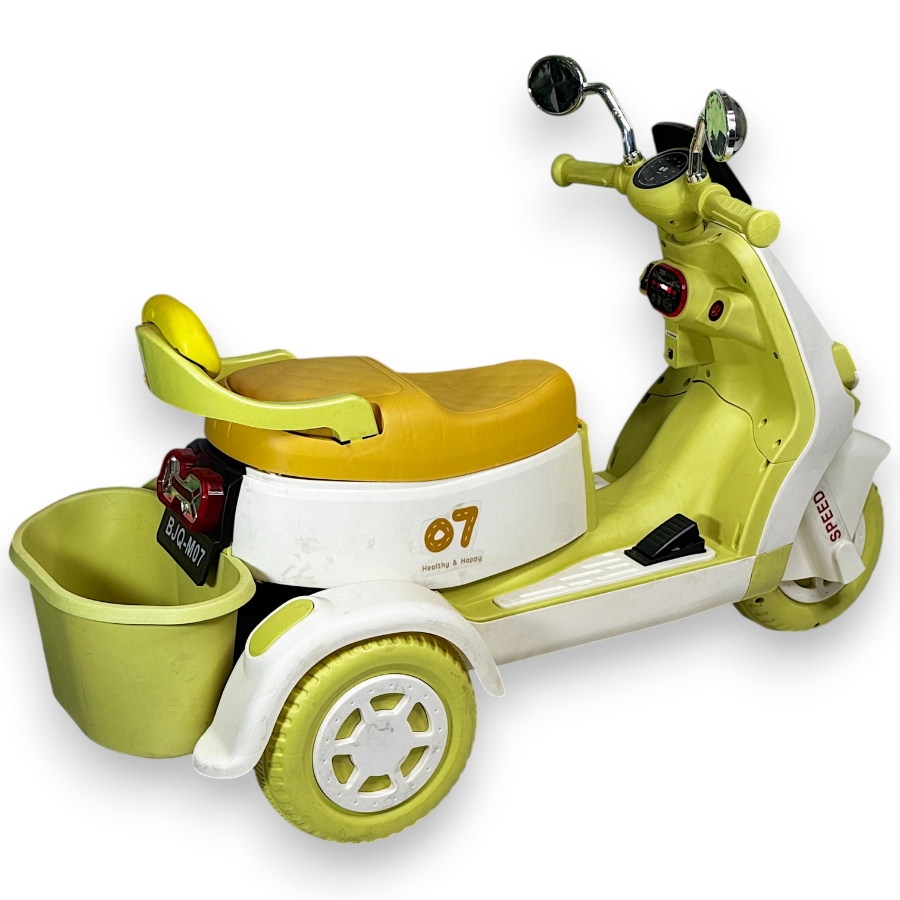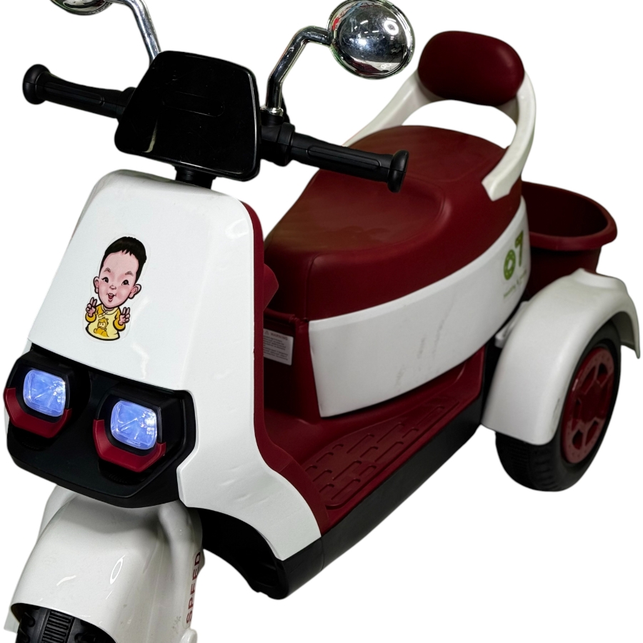 Детский электромотоцикл для детей 1–4 года. Работает от аккумулятора, управление педалью газа, есть музыка и свет. Устойчивый и безопасный.